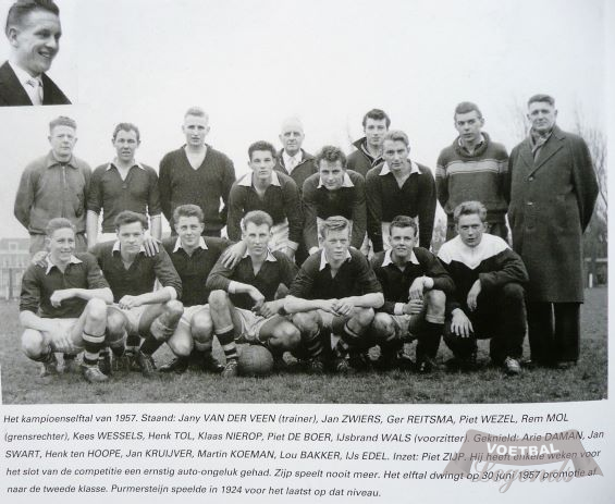 Nederland. Na deze sportief ?vette? jaren volgden de 'mageren' zich razendsnel op en werd er afgedaald tot in de 4e Kl. Verschillende oorzaken lagen hier aan ten grondslag: a. de kern van het elftal stopte, b. de bruinwitte kleuren verdwenen (sinds de oprichting het onmiskenbare handelsmerk !) c. verhuizing van het gezellige