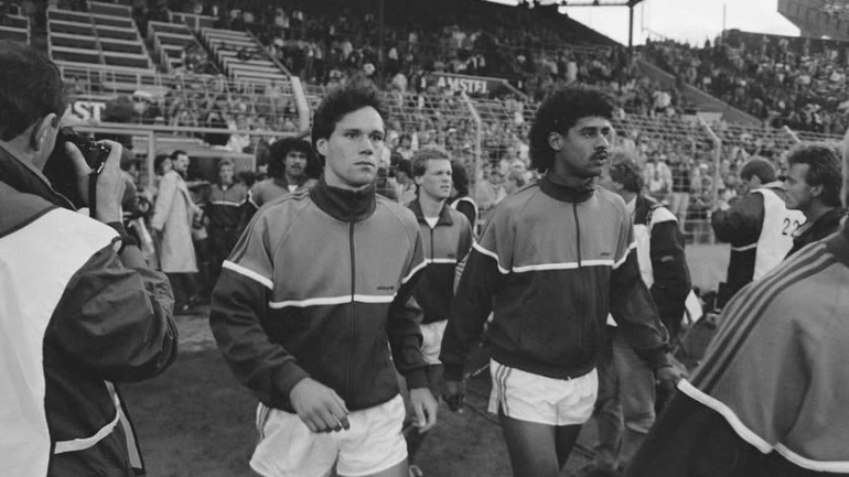 Vandaag is Ernie Brandts 70 jaar. Als speler won Brandts met PSV in 1978 de UEFA Cup en in 1986 de landstitel. Verder speelde de verdediger 28 dueks voor het Nederlands elftal en was basisspeler in de verloren WK finale tegen Argentinië in 1978 (foto Nationaal Archief: v.l.n.r. Hovenkamp, Neeskens, Brandts en Stevens tijdens een training van het Nederlands elftal op 13 november 1978).