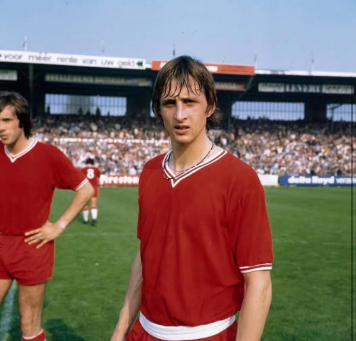 Vandaag 79 jaar geleden werd voetballegende Johan Cruijff geboren. De legendarische nummer 14 won in de jaren ’70 en ’80 vele prijzen met Ajax, FC Barcelona en Feyenoord. Zelf werd de 48-voudig international van het Nederlands elftal in 1971, 1973 en 1974 uitgeroepen tot Europees voetballer van het jaar (foto Nationaal Archief).