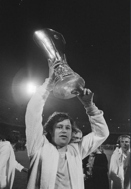 Vandaag 84 jaar geleden werd Feyenoord legende Rinus Israël geboren. De verdediger speelde ruim 240 officiële duels voor de club uit Rotterdam. In 1970 veroverde ” IJzeren Rinus ” met Feyenoord zowel de Europa Cup 1 als de Wereldbeker voor clubs. Vier jaar later won Israël met Feyenoord de UEFA Cup ten koste van Tottenham Hotspur (foto: Nationaal Archief: Israël op 29 mei 1974 met de UEFA Cup). In 2025 overleed Israël op 83-jarige leeftijd.