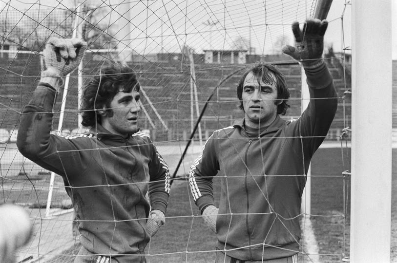 Vandaag is de legendarische Belgische doelman Jean-Marie Pfaff 72 jaar. Pfaff speelde onder meer voor Beveren, Bayern München, Lierse SK en Trabzonspor. Met het Belgische nationale elftal bereikte Pfaff in 1980 de EK finale en in 1986 de halve finale van het WK, waar de latere wereldkampioen Argentinië met 2-0 te sterk bleek (foto Nationaal Archief: de Belgische keepers Pfaff en Christian Piot tijdens een training van de Rode Duivels in maart 1977).